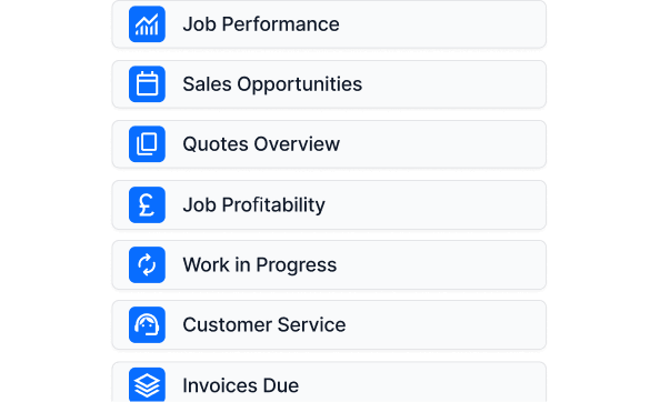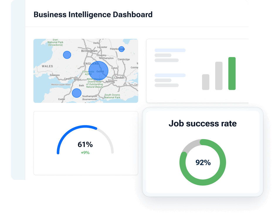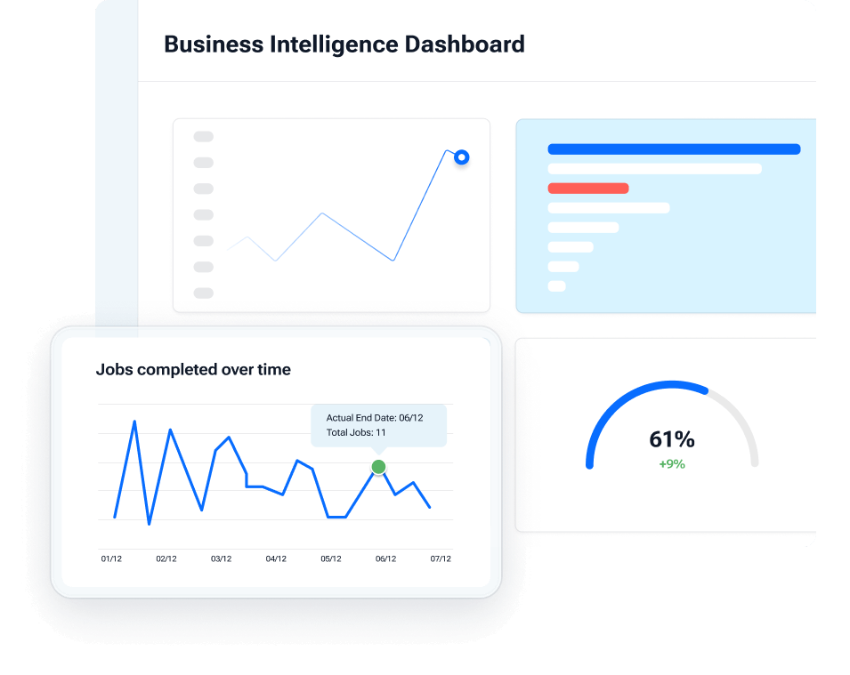 Every Job Management package comes with standard reports and access to Business Intelligence license(s).