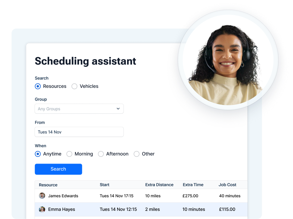 Customers choose appointment slots through your online booking portal, and the system automatically matches them with engineers who have the right skills, equipment and availability while preventing scheduling conflicts and reducing the need for phone-based coordination.