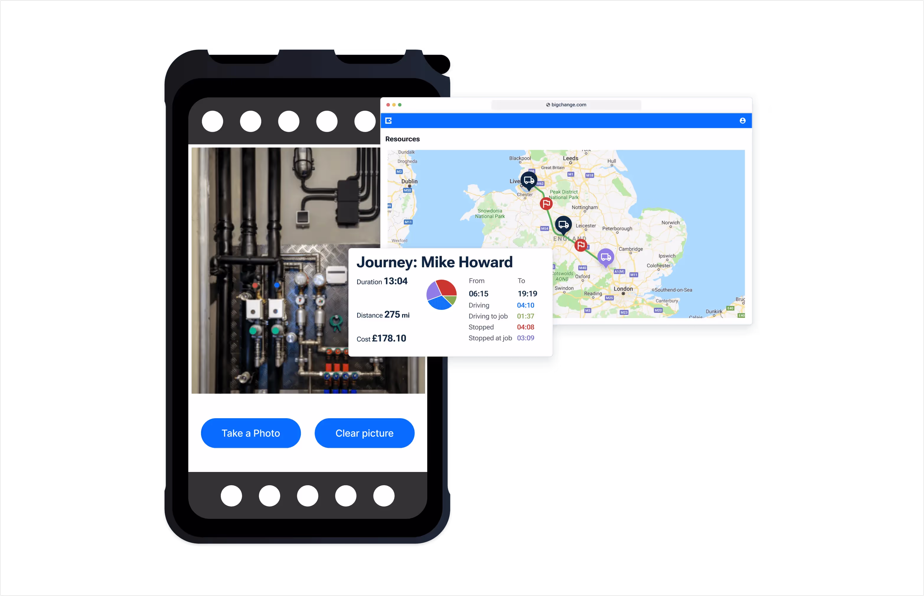 Photos can be time and location stamped, so you know exactly when and where they were taken. The BigChange app captures the exact job start and end times.