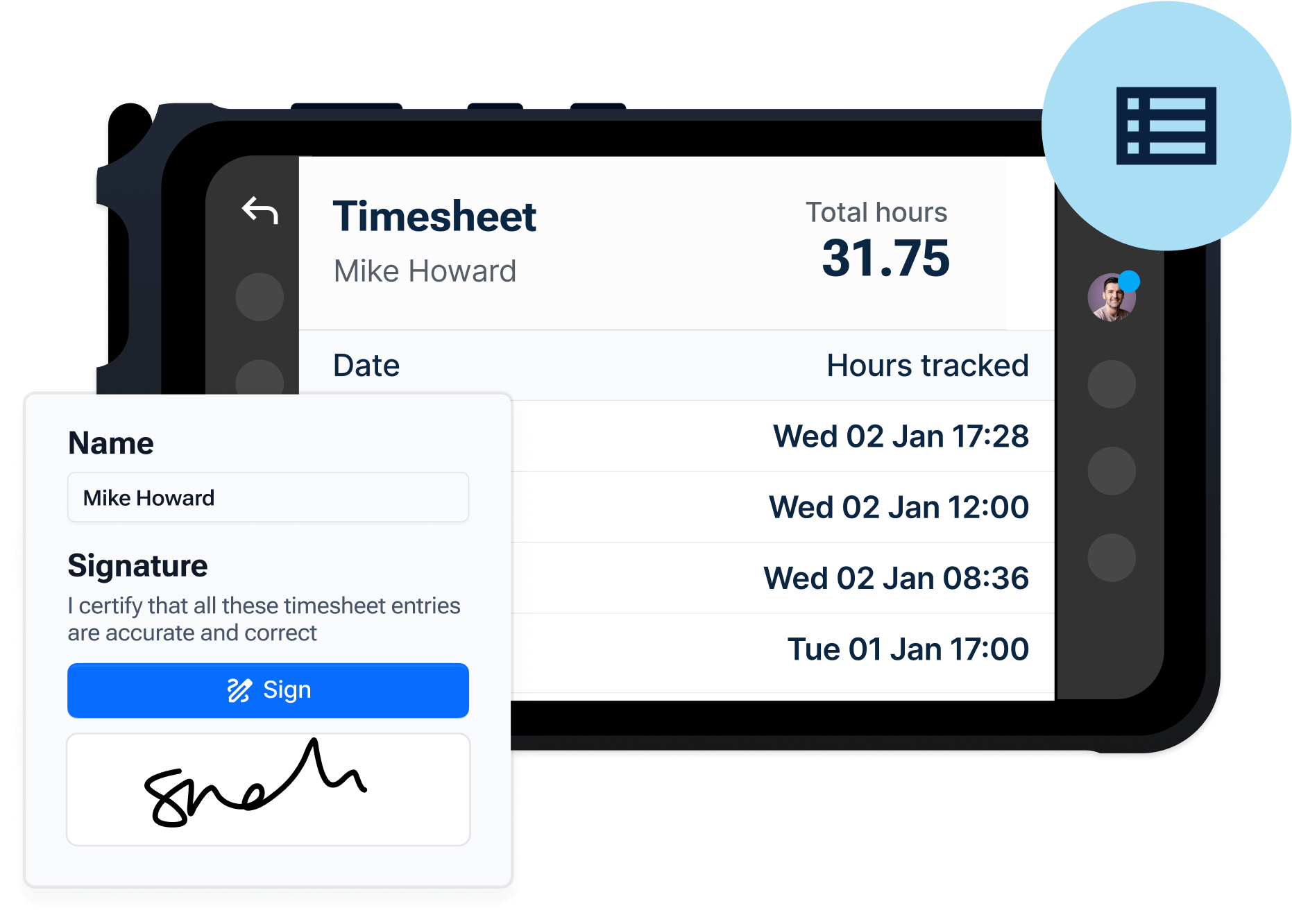 Automate timesheets for your engineers and technicians, capturing accurate working time records and allowing you to monitor your compliance with the working time directive.