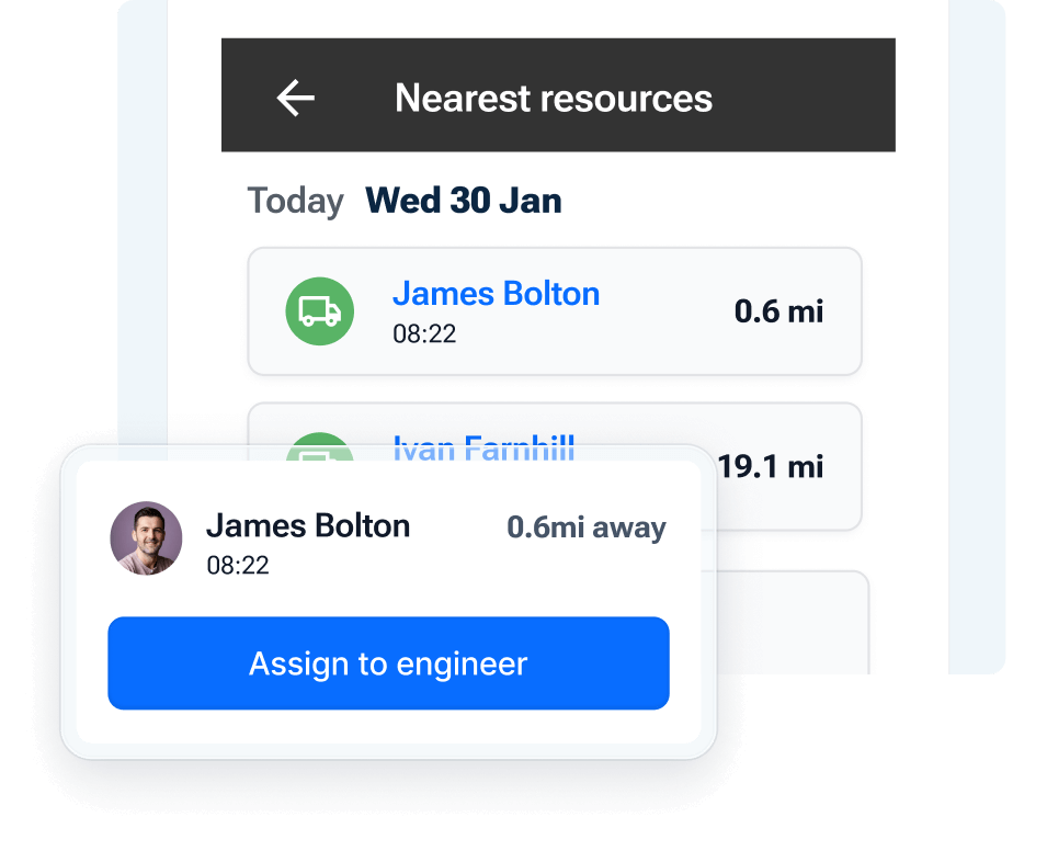 Respond faster; use the ‘find nearest resource’ feature to find the closest engineer, with the correct vehicle type and skills to attend urgent reactive work.